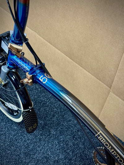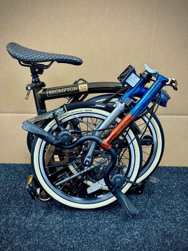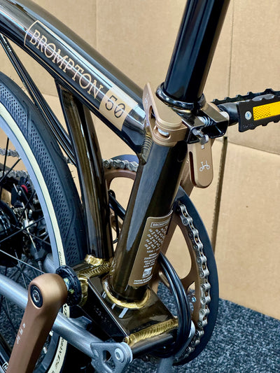 Each detail tells a chapter of Brompton's story. The Thermal Fade finish evokes the brazing process used by their team to produce bikes that last a lifetime. Each bike comes with one of 1,975 collectible ‘Brazer’s Coin’ as a tribute to their team’s talent and dedication. And, of course, there’s 50th anniversary gold wherever you look because this is a moment to celebrate!