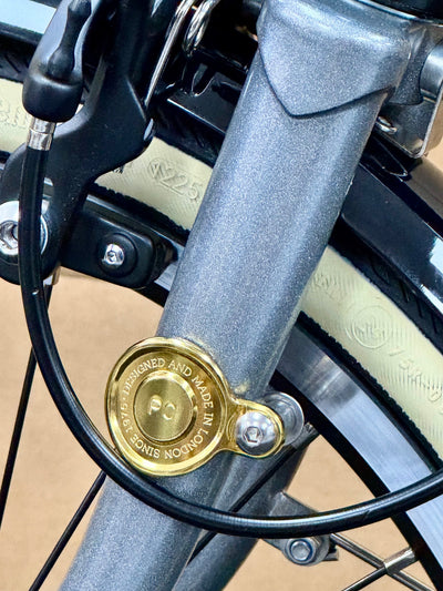 The Brompton Brazer’s Coin is one of 1,975, made to celebrate everyone who has created our bikes for the last fifty years. There are 52 expert brazers in Brompton's London Factory, handmaking every single Brompton. They are proud of what they do, and that’s why each bike is marked by its maker. Each brass coin is embossed with one of their brazer’s initials. The material will naturally patina over time, making it as unique as your Brompton bike.