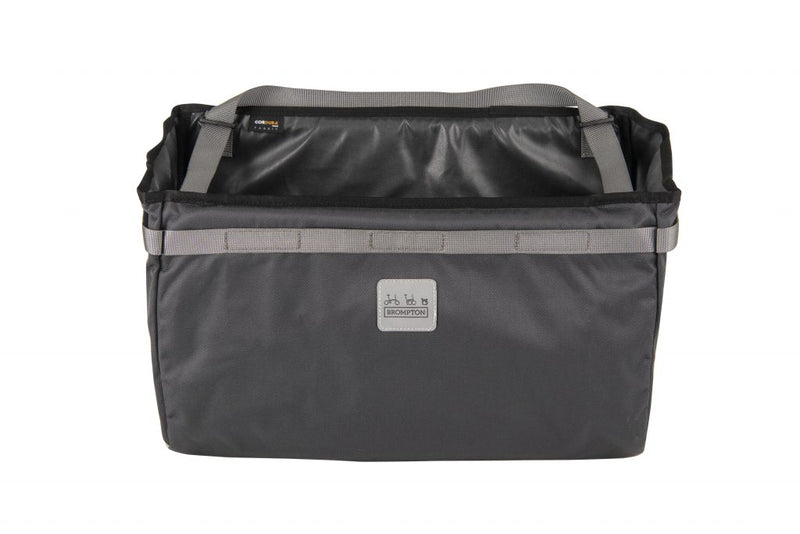 This basket bag is made using the sturdiest of fabrics and hardware for long lasting performance and durability. It still features the innovative folding brace and carry system with new added features - The added webbing loops on the outside allows you to attach extra items. This bag has stronger cam buckles and a new reflective logo badge to help keep you safe and seen. The Basket is compatible with ALL Brompton handlebar types.