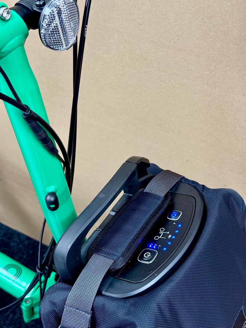 Smart over-the-air updates mean your Brompton Electric system benefits from automatic upgrades and continuous performance improvements. Change your power mode, use Start Assist, get dynamic range estimation and more with the all-new e-Motiq Handlebar Control.