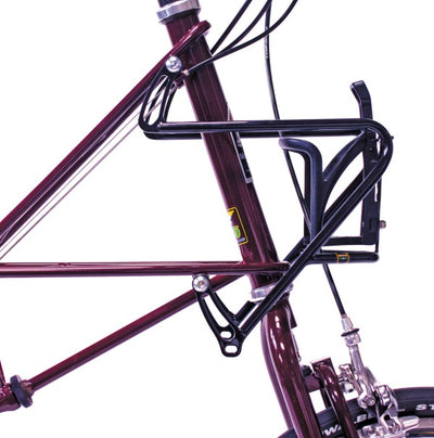 Front pannier carrier, designed for use with small front panniers. Made from Reynolds 525 tube. Provides mounting plat for any water bottle cage. (Water bottle cage not included).