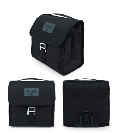 Excellent alternative to a larger Brompton bag. Folds compactly but can expand to fit a larger load. It has an interior mesh pocket and waterproof inner lining. High quality hardware.